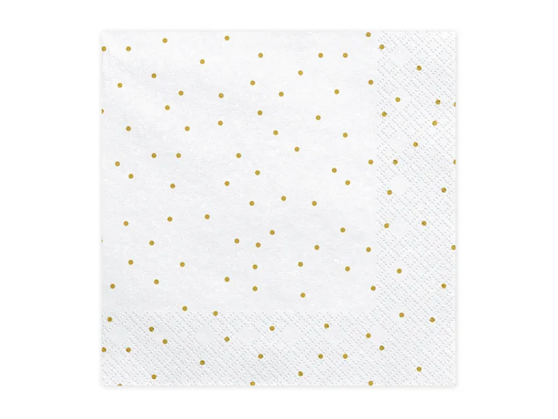 Maak de tafel extra feestelijk met deze schattige witte servetten met goude stippen. Leuk om te grebuken tijdens een babyshower, verjaardag of bruiloft.